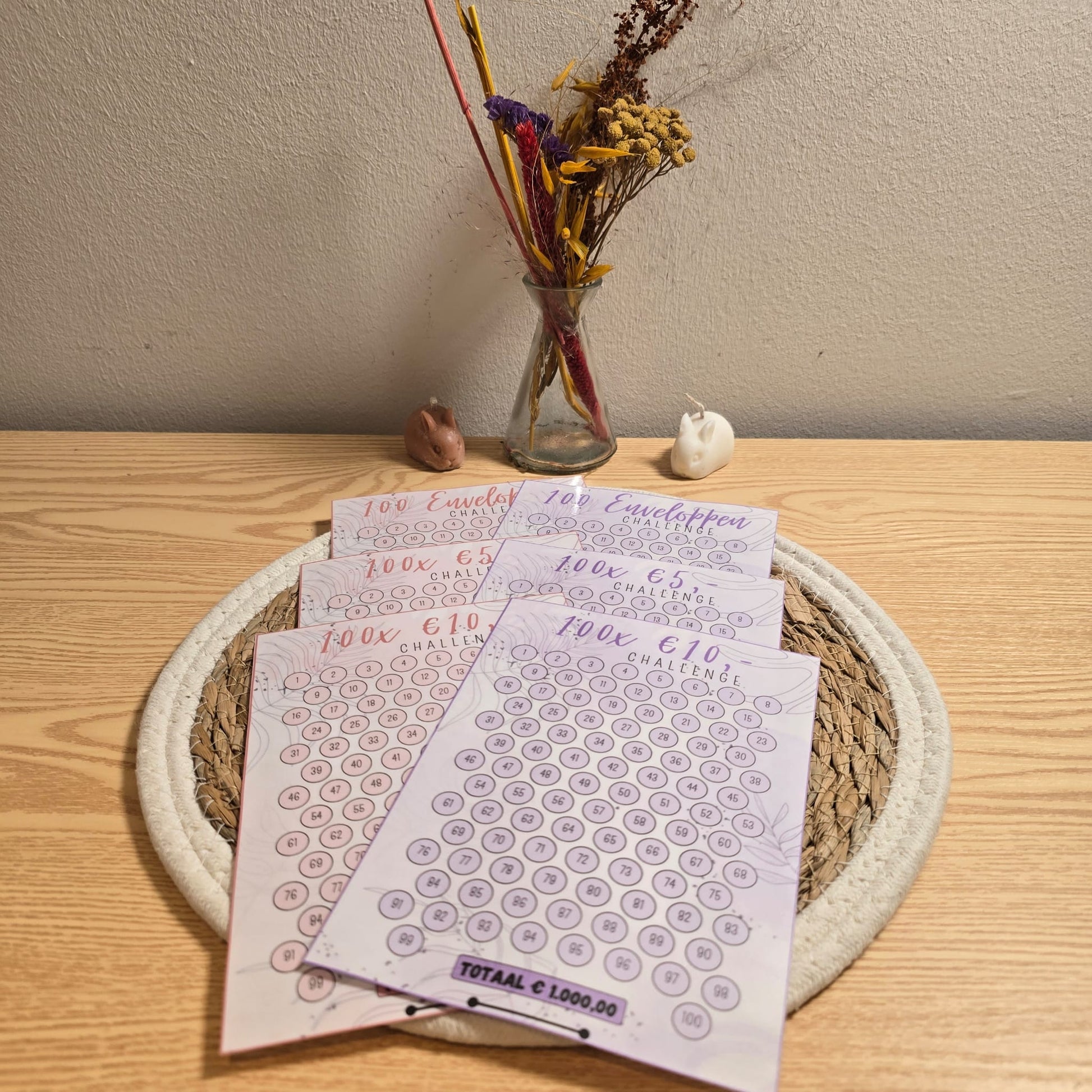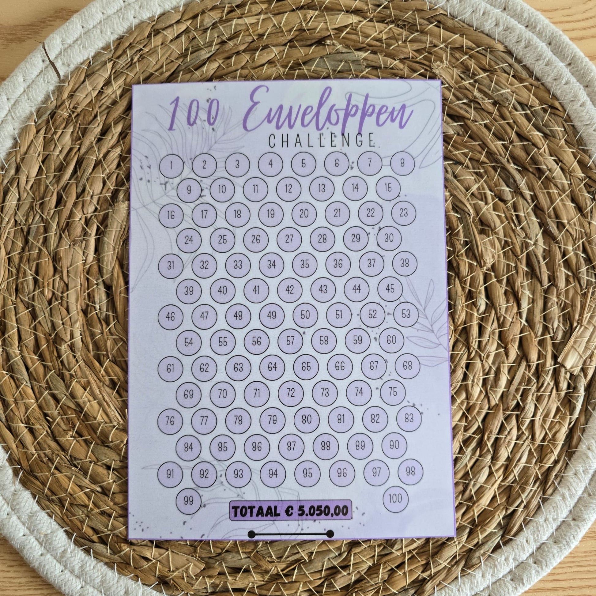 Tip: koop de leuke 100 enveloppen A5 binder bundel om deze manier van sparen overzichtelijk te houden. Deze challenge zit inbegrepen in deze bundel.