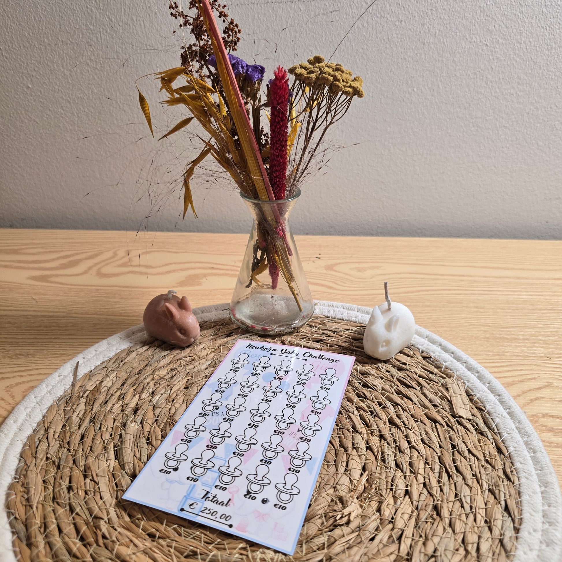 Een leuke challenge om te sparen voor uw aankomende kleintje. Ook leuk om te gebruiken als spaarpot voor uw baby of voor een leuk babyshower cadeau voor bijv. je zus of vriendin.