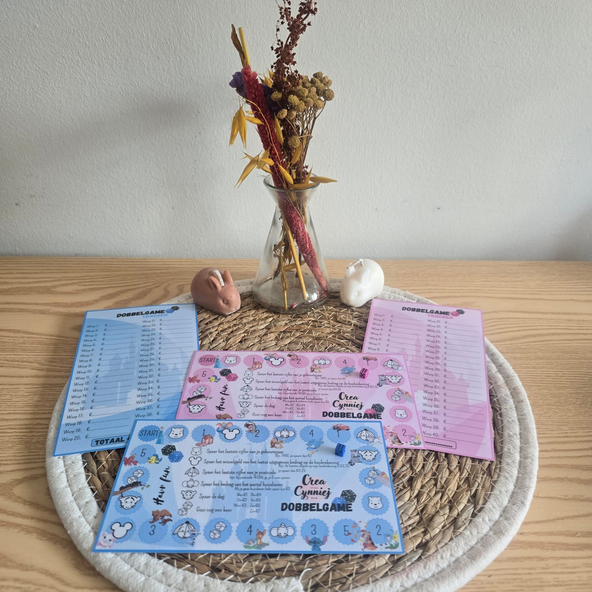incl. gekleurde mini dobbelsteen roze of blauw (5mm)