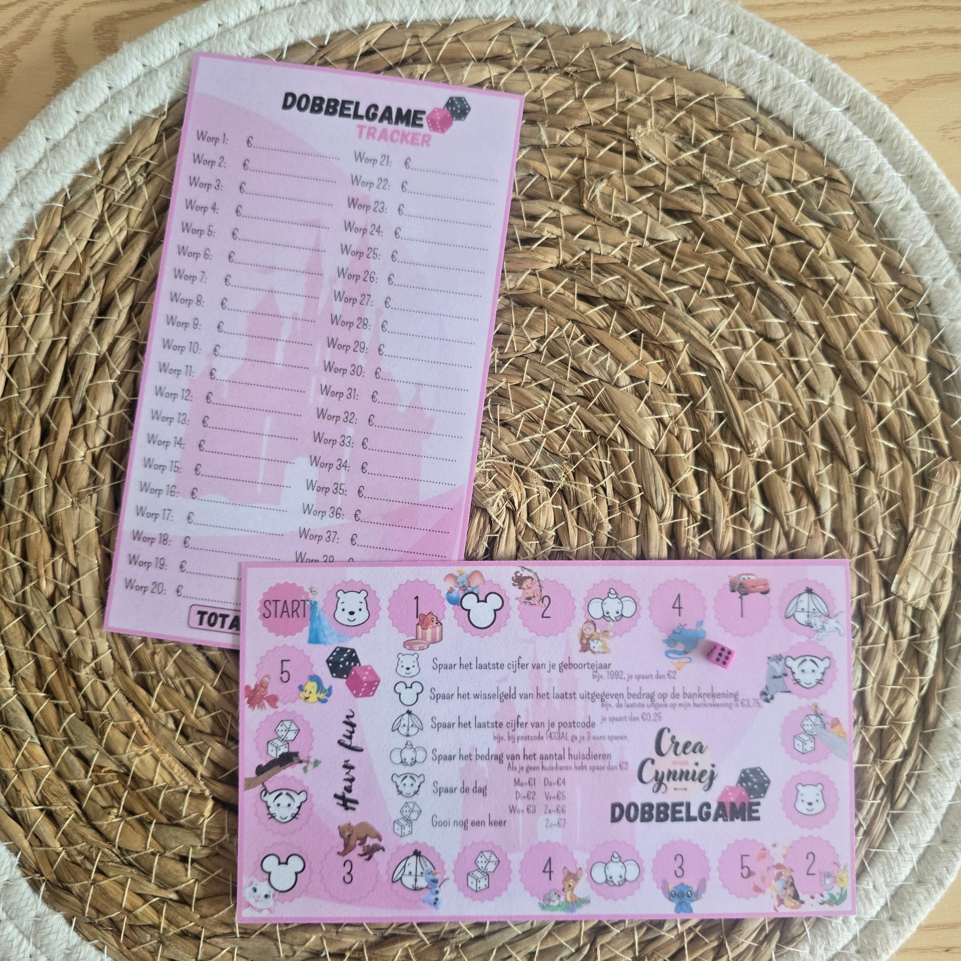 Gooi de dobbelsteen, volg de magische opdrachten en spaar terwijl je speelt! Verkrijgbaar in roze en blauw voor een betoverende spaarchallenge. Wie bereikt als eerste het spaardoel? 🏰💰🌟
