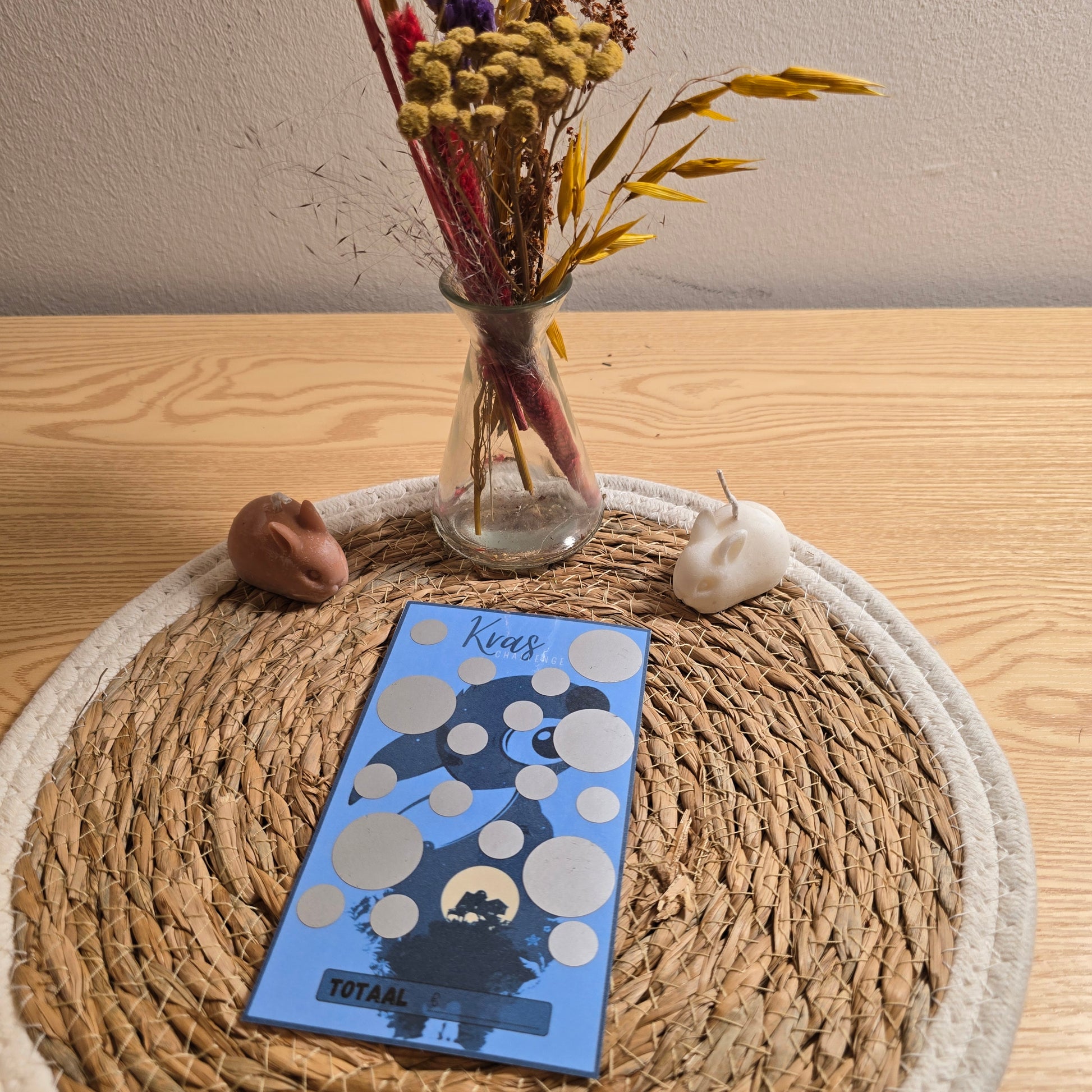 Spaar wat je krast. Met deze leuke kraschallenge spaar je een bedrag onder de kras laag. Tip: heb je de challenge volledig open gekrast? Op de webshop vind je losse krasstickers waardoor je deze challenge opnieuw kunt gebruiken.