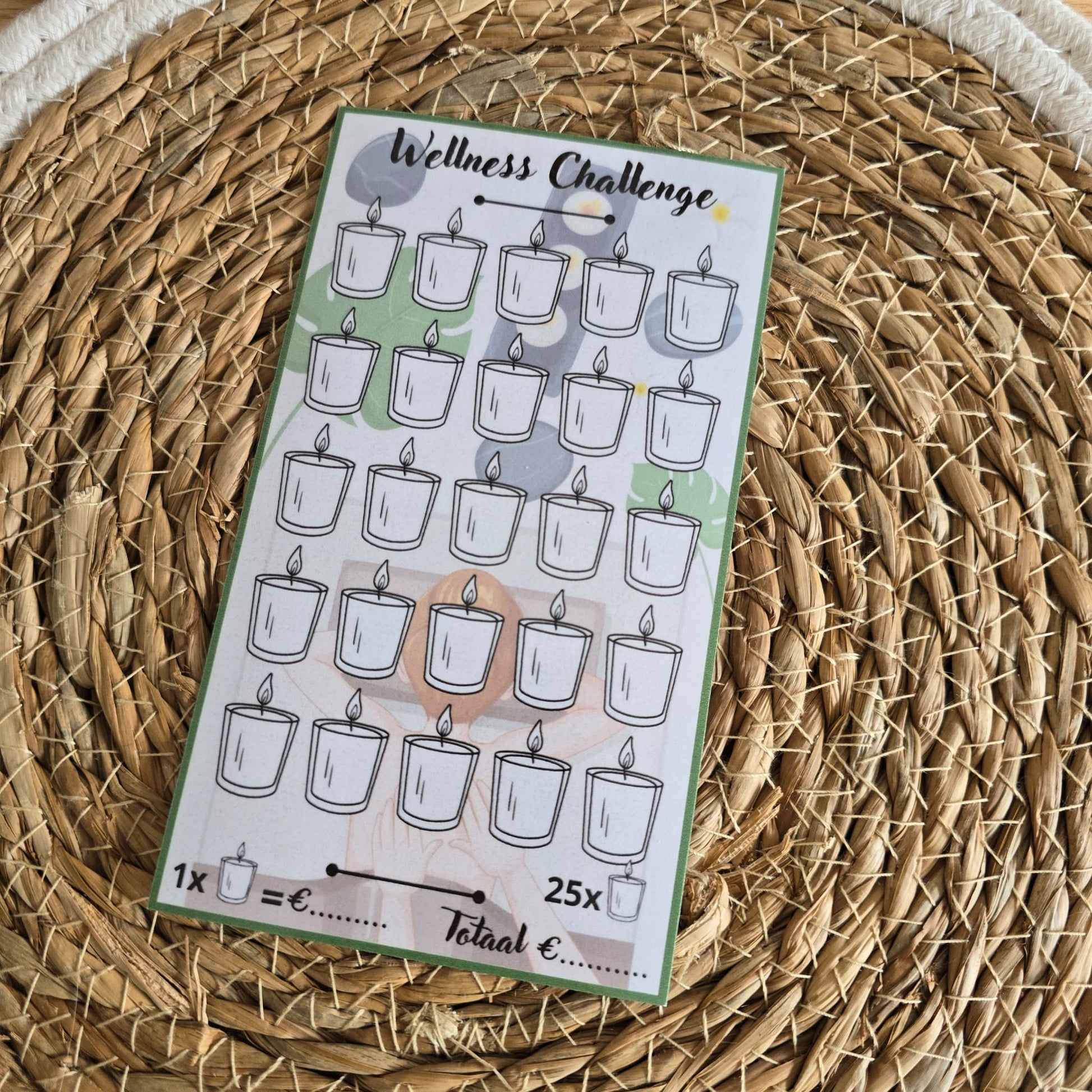 Met deze leuke challenge kun je hiervoor sparen. Deze challenge is vrij invulbaar met 25 plaatjes van een kaars of 24 plaatjes van een gezicht met een handdoek en komkommer schijfjes.